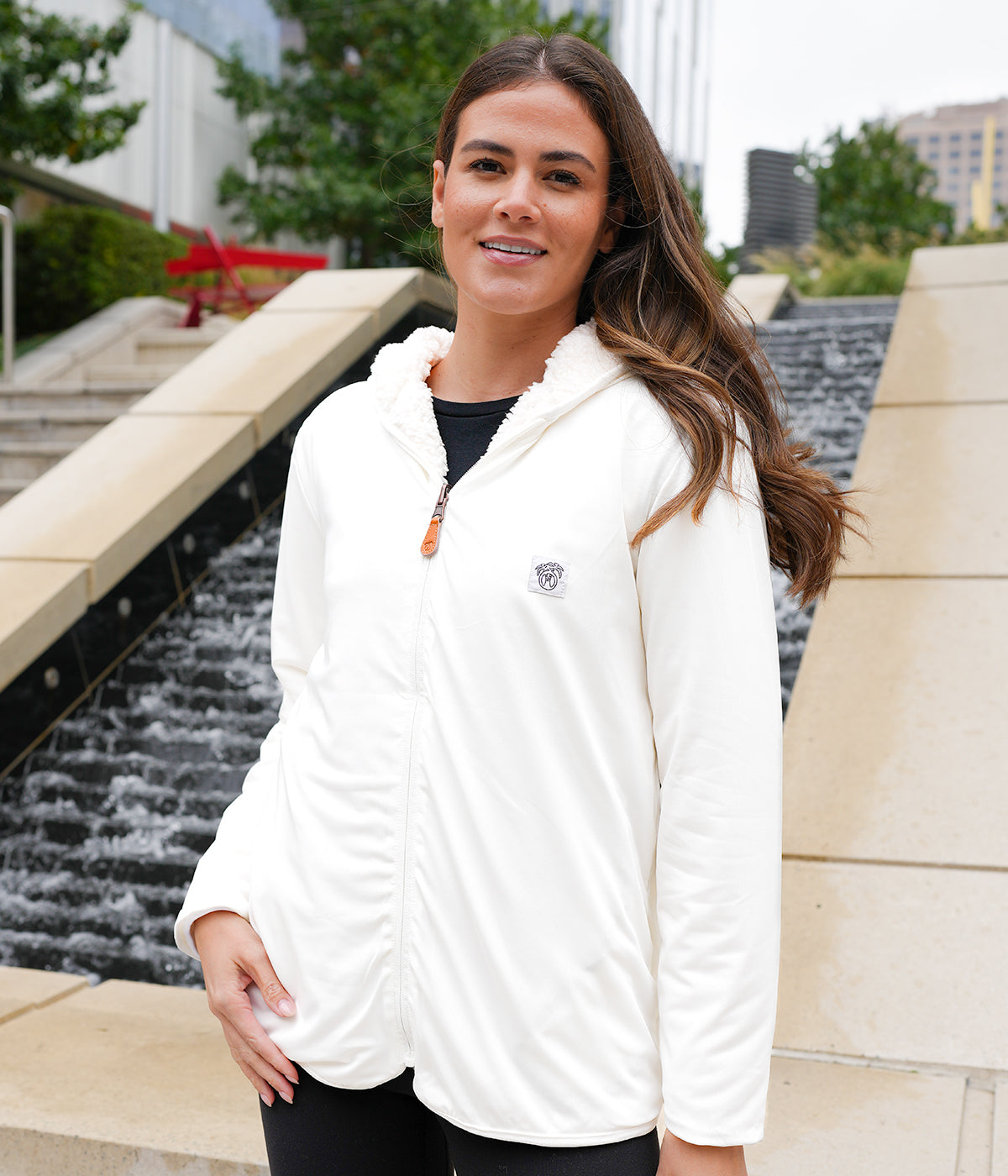 Keeps the same polished look no matter which side you choose—fluffy sherpa or silky-smooth performance.