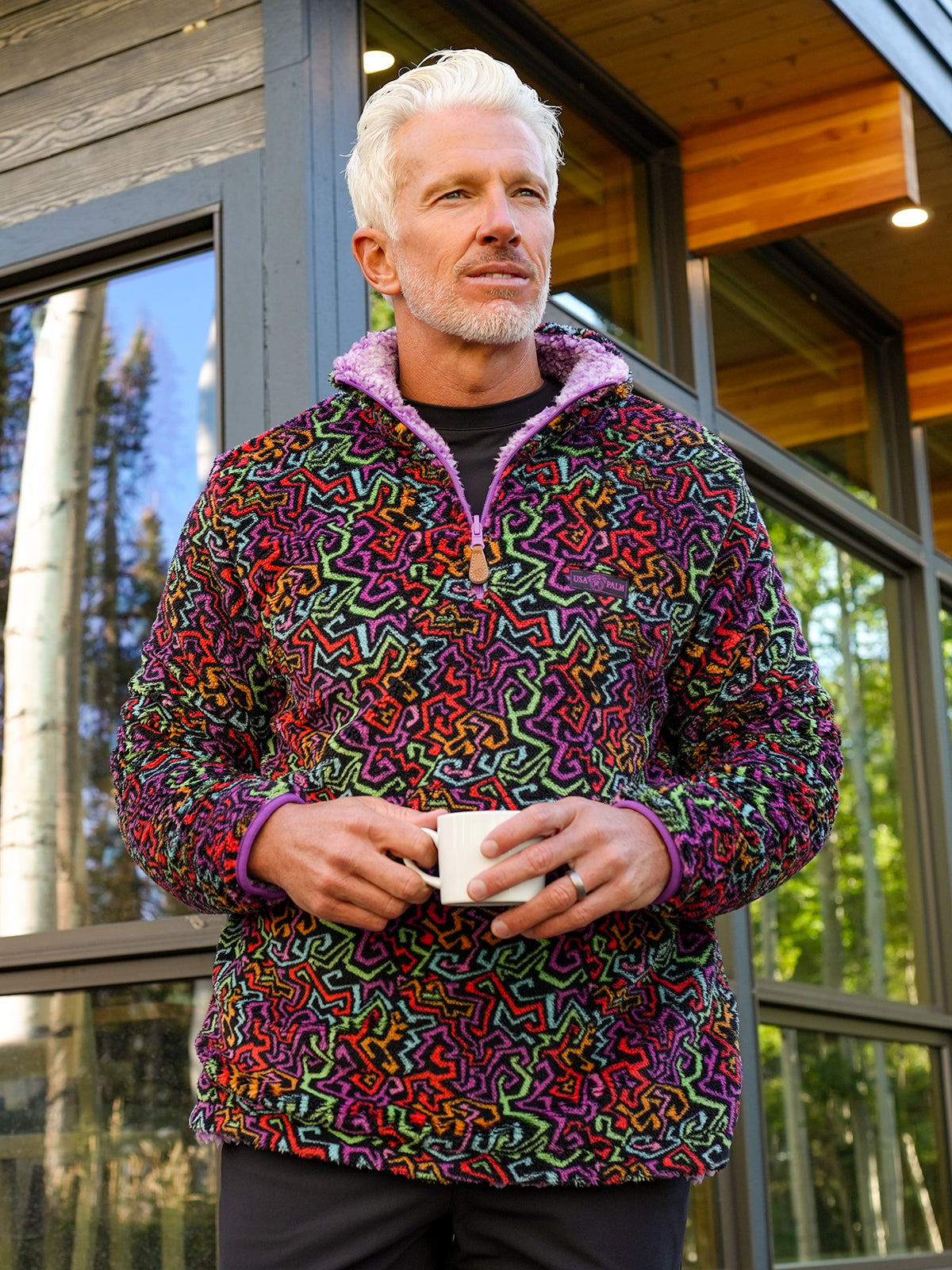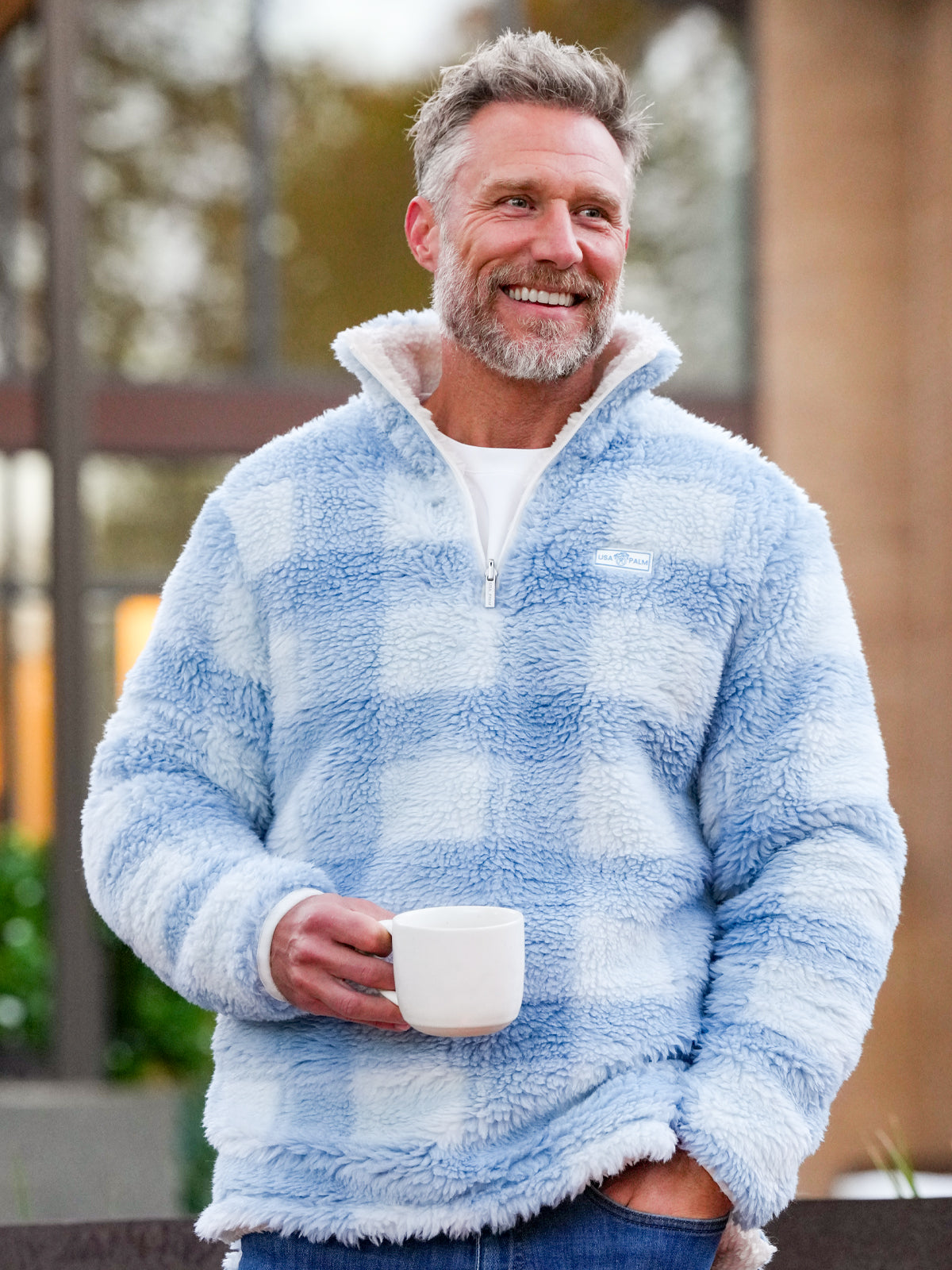 After years of experimenting with new fabrics and fun patterns, Logan came up with a big idea: a fully reversible sherpa that combined two completely different experiences in one piece. Five years of development later, the Reversible Sherpa 1/4 Zip launched. One side is silky and breathable. The other side is incredibly soft and fluffy. It became the piece that could take someone from the country club to the couch with a single flip, and it helped open the door to the full collection we offer today.