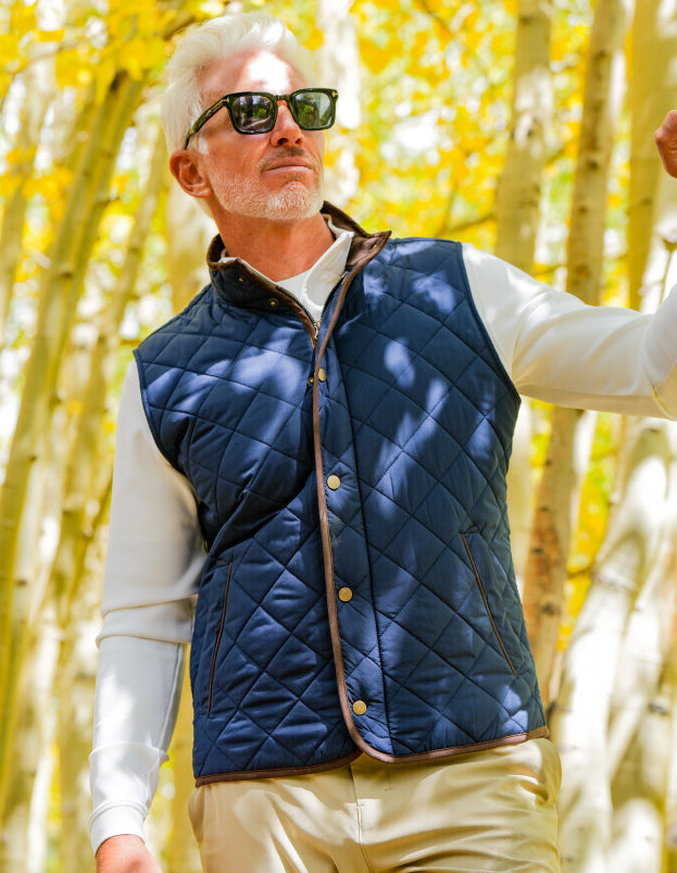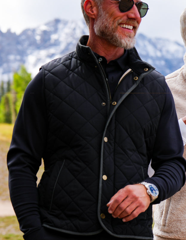 A refined quilted vest built for men who want polished warmth, everyday versatility, and a modern edge.