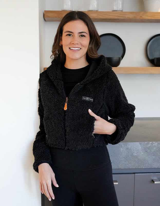 Enjoy two sides of comfort with the Women’s Reversible Cropped Full Zip Hoodie. Whether you choose plush sherpa or the silky softness of faux fur, its hood and cropped silhouette bring both warmth and modern style.